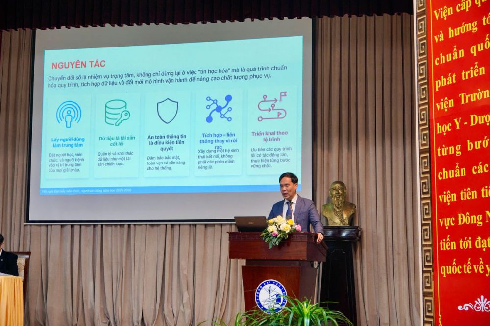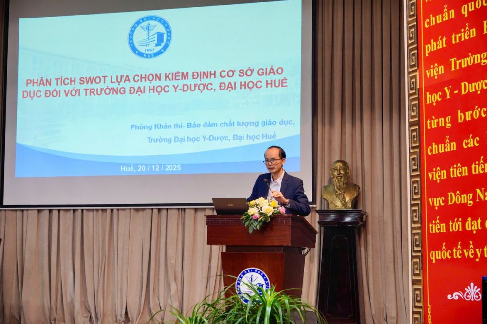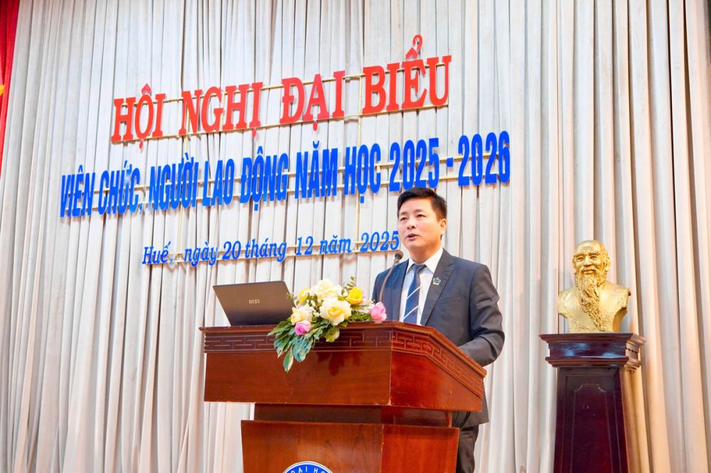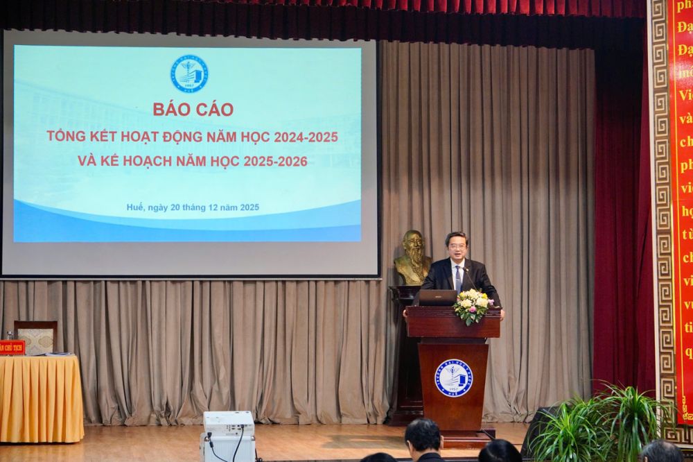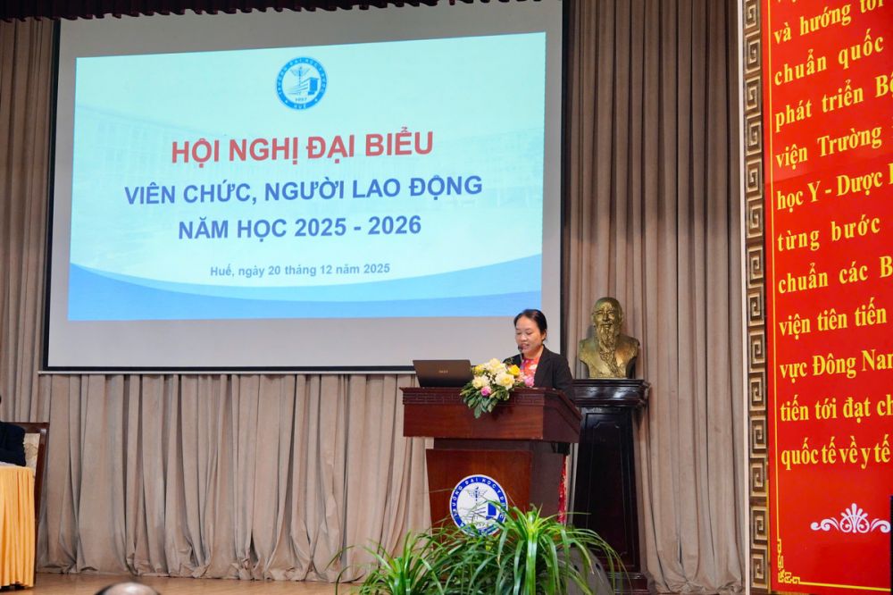 Hội nghị Đại biểu viên chức, người lao động Trường Đại học Y - Dược, Đại học Huế đã xác định chủ đề của năm học 2025 - 2026 là: “Đoàn kết, quyết tâm xây dựng Trường Đại học Y - Dược, Đại học Huế trở thành một cơ sở giáo dục đại học khoa học sức khoẻ hàng đầu của cả nước” theo phương châm ‘‘Ưu tú trong học thuật và dịch vụ y tế - Hiệu quả trong quản trị - Uy tín trong cộng đồng - Thành công trong chuyển đổi số, đột phá phát triển khoa học công nghệ và đổi mới sáng tạo”.