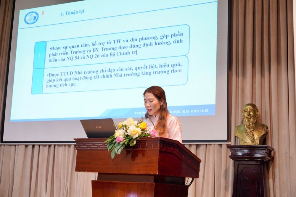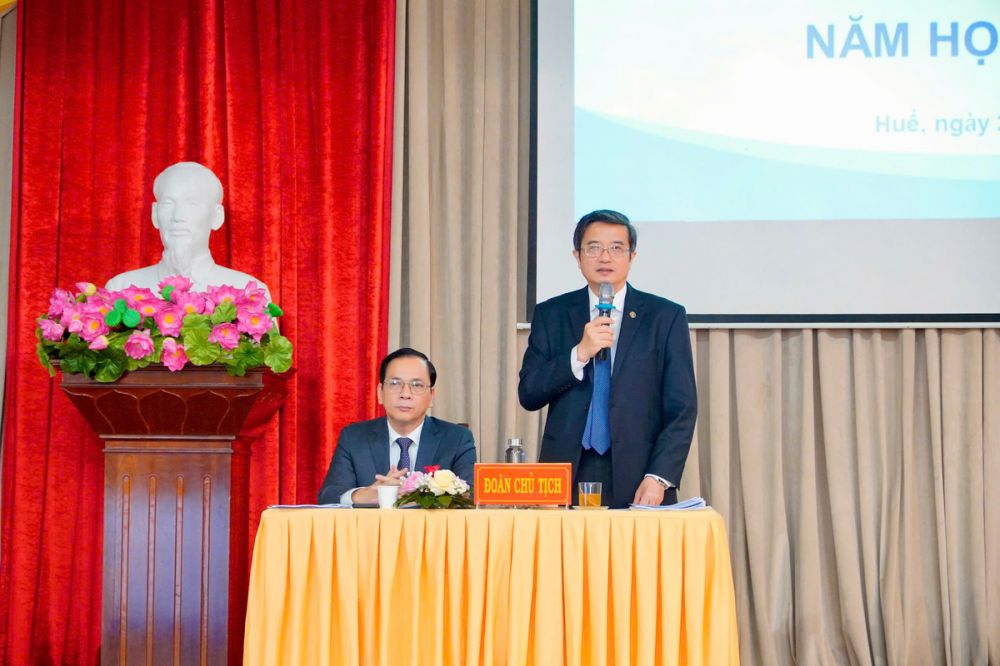 Phát biểu tại Hội nghị, TS. Bùi Văn Lợi - Phó Giám đốc Phụ trách Đại học Huế nhấn mạnh dưới sự lãnh đạo năng động, hiệu quả của Đảng uỷ, Ban Giám hiệu, sự nỗ lực của toàn thể viên chức, người lao động, Trường Đại học Y - Dược, Đại học Huế đã đạt được nhiều kết quả đáng ghi nhận và tự hào. TS. Bùi Văn Lợi đánh giá cao những thành tích mà Nhà trường đã đạt được trong thời gian qua, những kết quả này không chỉ phản ánh sự nỗ lực bền bỉ của tập thể Nhà trường mà còn khẳng định bản lĩnh vượt khó, tinh thần đổi mới sáng tạo và khát vọng vươn lên để tiếp tục có nhiều đóng góp cho ngành giáo dục đào tạo, ngành y tế của địa phương và cả nước.