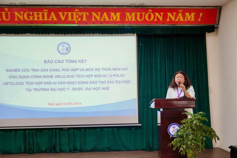 Tại Hội thảo, các giảng viên trình bày hiệu quả và khả năng ứng dụng của hệ thống U-Folio trong đào tạo bác sĩ nội trú, bao gồm: “Báo cáo kết quả nghiên cứu tính sẵn sàng, phù hợp và mức độ thỏa mãn khi ứng dụng công nghệ UBLCloud tích hợp NSD-AI / U-FOLIO / UBTCLOUD tích hợp NSD-AI vào hoạt động đào tạo sau đại học tại Trường Đại học Y - Dược, Đại học Huế” (TS. Nguyễn Thị Anh Phương); “Báo cáo triển khai học bạ điện tử U-Folio để đánh giá tiến trình trong chương trình đào tạo bác sĩ nội trú của Trường Đại học Y - Dược, Đại học Huế” (TS. Lê Phan Minh Triết); “Báo cáo tham luận triển khai học bạ điện tử U-Folio để đánh giá tiến trình trong chương trình đào tạo bác sĩ nội trú chuyên ngành Tâm thần” (ThS. Nguyễn Quang Ngọc Linh).