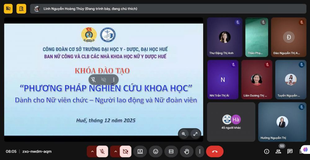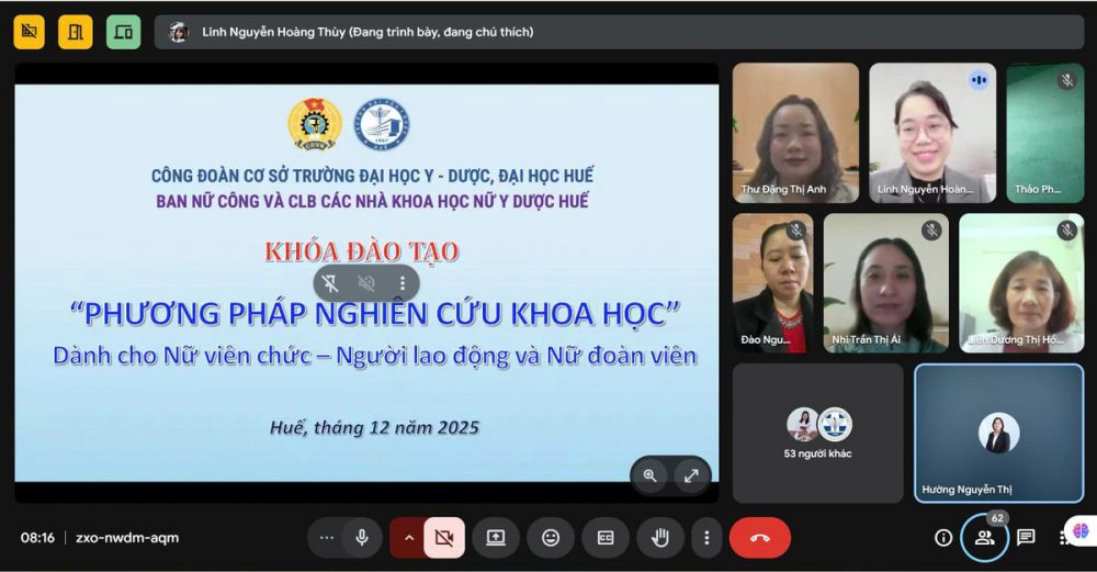 Bên cạnh nhiệm vụ chính là giảng dạy và khám chữa bệnh, công tác nghiên cứu khoa học cũng được xem là nhiệm vụ quan trọng của cán bộ và giảng viên, luôn được Lãnh đạo Nhà trường quan tâm và chỉ đạo sát sao. Trong những năm qua, Trường Đại học Y - Dược, Đại học Huế đã đạt được những thành tích nổi bật về nghiên cứu khoa học, trong đó có nhiều đề tài và công trình khoa học đến từ đội ngũ nữ VC-NLĐ và nữ đoàn viên. Tuy nhiên, năng lực nghiên cứu của đội ngũ nữ chưa đồng đều, dẫn đến việc một số chị em chưa tự tin trong việc đề xuất ý tưởng và đăng ký đề tài nghiên cứu khoa học. Nắm được tâm tư và nguyện vọng này, từ năm 2025, cùng với sự ra đời của CLB các nhà khoa học nữ Y Dược Huế, Ban Nữ công đã đề xuất với Lãnh đạo Nhà trường và Công đoàn về việc mở lớp đào tạo, bồi dưỡng năng lực nghiên cứu cho chị em đoàn viên và VC-NLĐ.