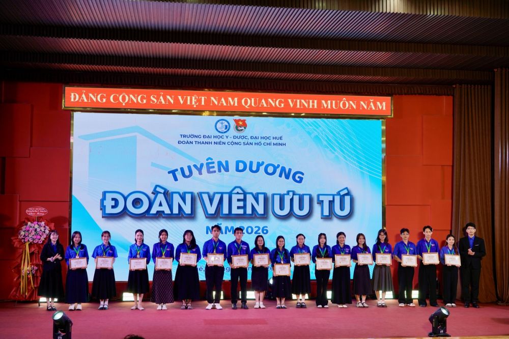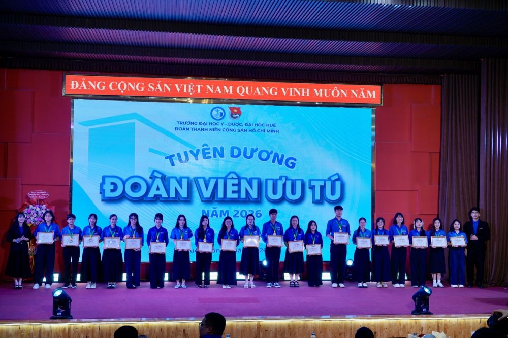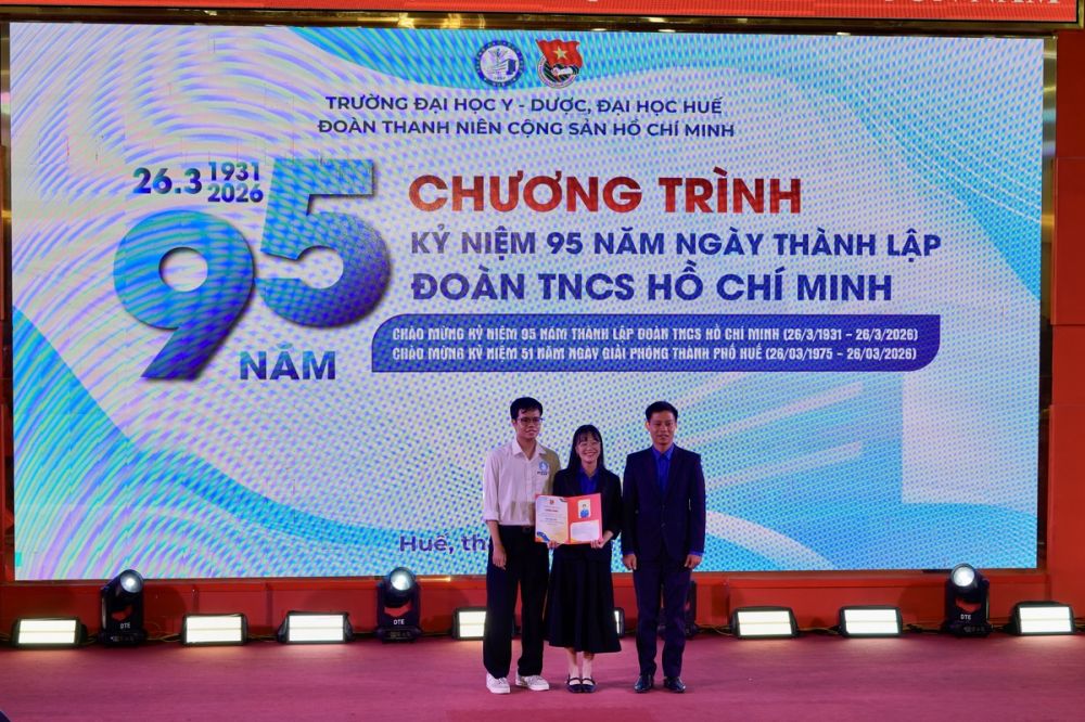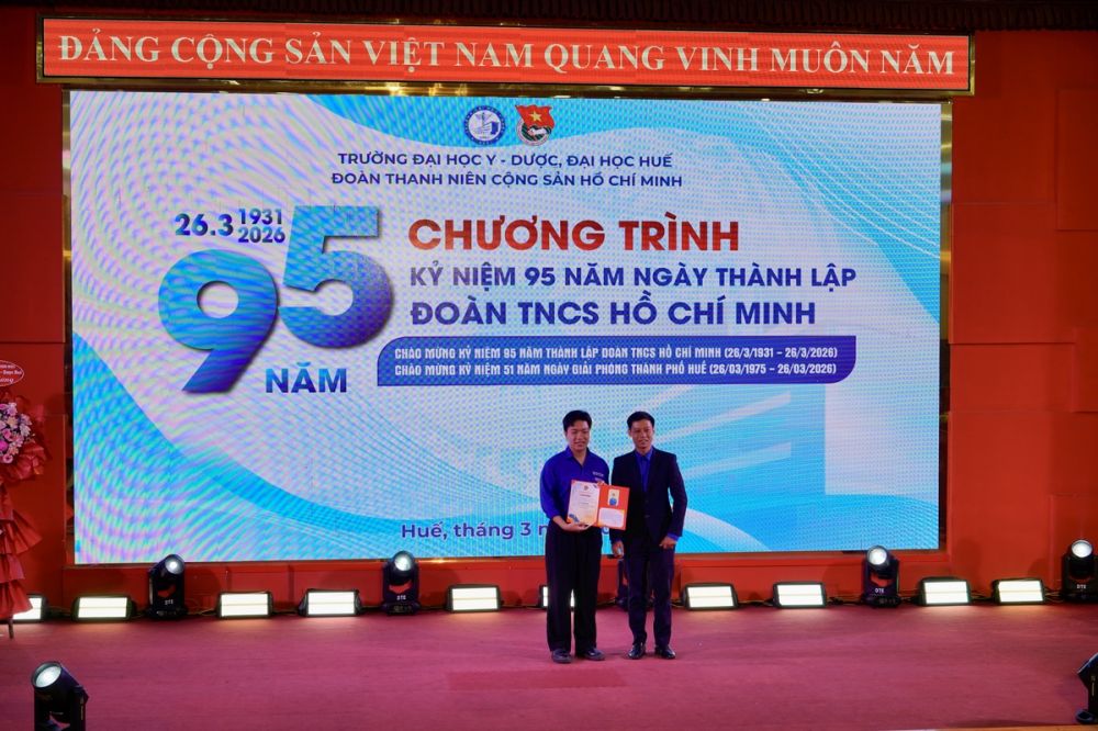 Dịp này, công trình “Lễ hội Macchabée -Tri ân người hiến xác cho khoa học” của Đoàn Thanh niên - Hội Sinh viên nhà trường được tuyên dương tại Giải thưởng “Nắng Tháng 3” năm 2026 do Đoàn Đại học Huế phát động. Đồng chí Trần Thanh Nhật Nam -Ủy viên Ban Chấp hành Đoàn Trường được tuyên dương danh hiệu Thủ lĩnh Đoàn -Hội tiêu biểu năm 2026.