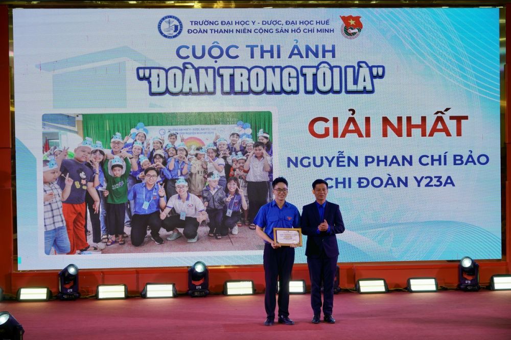 Tại chương trình, Đoàn Thanh niên Trường Đại học Y -Dược, Đại học Huế vinh dự nhận Bằng khen của Ban Chấp hành Trung ương Đoàn TNCS Hồ Chí Minh “Đã có thành tích xuất sắc trong công tác khắc phục hậu quả do mưa lũ gây ra trên địa bàn thành phố Huế năm 2025”; đồng chí Hoàng Trọng Thành Nguyên - Ủy viên Ban Chấp hành Đoàn Trường Đại học Y - Dược, Đại học Huế cũng được tuyên dương, khen thưởng vì những nỗ lực, trách nhiệm và tinh thần tiên phong trong các hoạt động hỗ trợ, giúp đỡ người dân vùng bị ảnh hưởng. Đây là sự ghi nhận cho tinh thần xung kích, chủ động của tuổi trẻ Nhà trường trong các hoạt động vì cộng đồng.