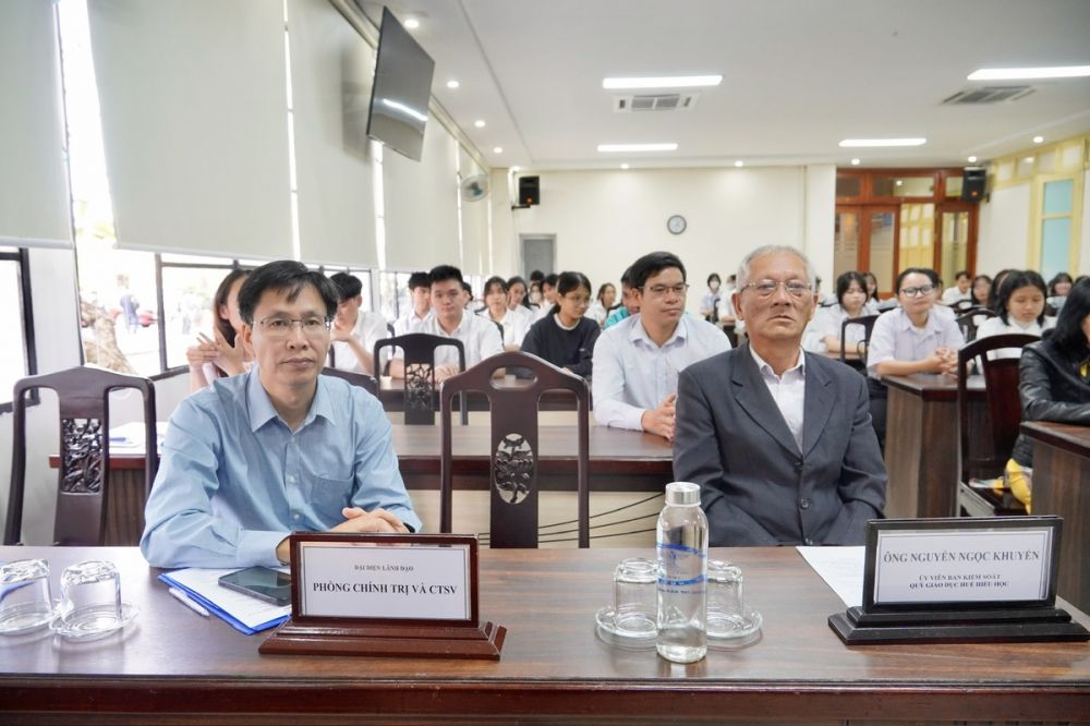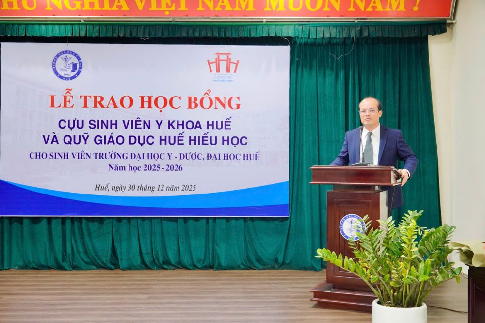 Thay mặt lãnh đạo Nhà trường, PGS.TS. Nguyễn Minh Tâm - Phó Hiệu trưởng trân trọng gửi lời cảm ơn đến Ban liên lạc Cựu sinh viên, các thế hệ cựu sinh viên và Quỹ Giáo dục Huế hiếu học vì sự quan tâm, sẻ chia dành cho sinh viên của Trường. PGS.TS. Nguyễn Minh Tâm khẳng định đây không chỉ là sự hỗ trợ về vật chất mà còn là nguồn động viên tinh thần to lớn, tiếp thêm niềm tin và nghị lực để sinh viên tiếp tục nỗ lực học tập, rèn luyện, phấn đấu trở thành những công dân có ích và những cán bộ y tế có đủ năng lực, phẩm chất đạo đức phục vụ cộng đồng trong tương lai.