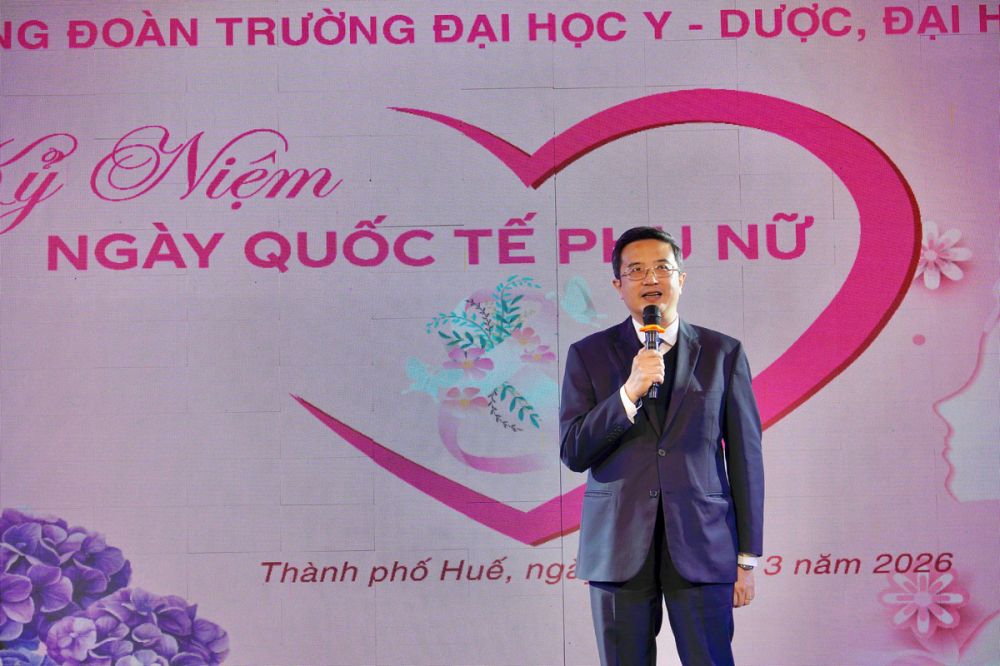 Phát biểu tại chương trình, GS.TS. Nguyễn Vũ Quốc Huy - Hiệu trưởng Trường Đại học Y - Dược, Đại học Huế gửi lời chúc mừng tốt đẹp đến toàn thể nữ viên chức - người lao động; đồng thời ghi nhận và đánh giá cao những đóng góp quan trọng của lực lượng nữ trong các lĩnh vực giảng dạy, nghiên cứu khoa học, quản lý đào tạo và chăm sóc sức khỏe nhân dân.