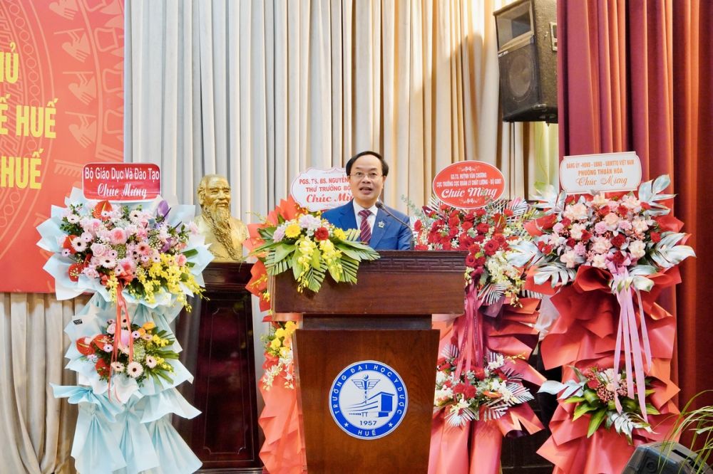 Trước vận hội mới, thời cơ mới, thách thức mới, thay mặt Tập thể lãnh đạo Trường Đại học Y - Dược, Đại học Huế mới, GS. TS. Nguyễn Vũ Quốc Huy - Hiệu trưởng Nhà trường đã phát biểu nhận nhiệm vụ và kêu gọi toàn thể cán bộ, giảng viên, viên chức, người lao động, học viên, sinh viên hãy phát huy cao nhất tinh thần đoàn kết, trách nhiệm, sáng tạo, chủ động, dám nghĩ, dám làm, dám chịu trách nhiệm vì lợi ích chung, vì sự phát triển bền vững của Nhà trường, của ngành giáo dục và đào tạo, ngành y tế và trên tất cả là của đất nước Việt Nam; cùng nhau gìn giữ, phát huy những giá trị truyền thống tốt đẹp, bản sắc riêng của hai đơn vị, hòa quyện trong một bản sắc mới - bản sắc của Trường Đại học Y - Dược, Đại học Huế hợp nhất: lớn hơn, mạnh hơn, đặc trưng hơn và bền vững hơn; cùng nhau hành động, quyết tâm thực hiện thắng lợi các mục tiêu chiến lược đã đề ra, xây dựng Trường Đại học Y - Dược, Đại học Huế trở thành trung tâm đào tạo, nghiên cứu, chuyển giao công nghệ y dược hàng đầu của khu vực và cả nước, có uy tín quốc tế, góp phần nâng cao chất lượng chăm sóc sức khỏe nhân dân, phát triển bền vững đất nước.