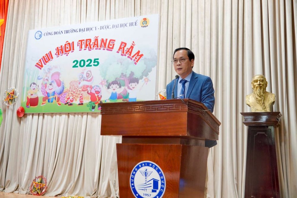 Phát biểu tại chương trình, PGS.TS. Đặng Công Thuận - Phó Chủ tịch thường trực Công đoàn Trường chia sẻ: Chương trình “Vui hội trăng rằm” không chỉ mang đến niềm vui cho các con của VC-NLĐ mà còn là cầu nối gắn kết tình cảm trong đại gia đình Trường Đại học Y - Dược, Đại học Huế. Đồng thời, chương trình cũng là dịp để chúng ta ôn lại những nét văn hóa, truyền thống tốt đẹp của dân tộc và truyền tải những nét đẹp đó đến với thế hệ trẻ, từ đó khơi gợi tình yêu thương và sự đoàn kết.