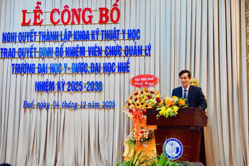 Trước đó, ngày 23/10/2025, Thủ tướng Chính phủ ký Quyết định số 2346/QĐ-TTg về việc sáp nhập Trường Cao đẳng Y tế Huế trực thuộc UBND thành phố Huế vào Trường Đại học Y - Dược, Đại học Huế. Tiếp nối chủ trương của Chính phủ, ngày 14/11/2025, Hội đồng trường Trường Đại học Y - Dược, Đại học Huế nhiệm kỳ 2025-2030 ban hành Nghị quyết số 28/NQ-HĐT về việc thành lập Khoa Kỹ thuật Y học.