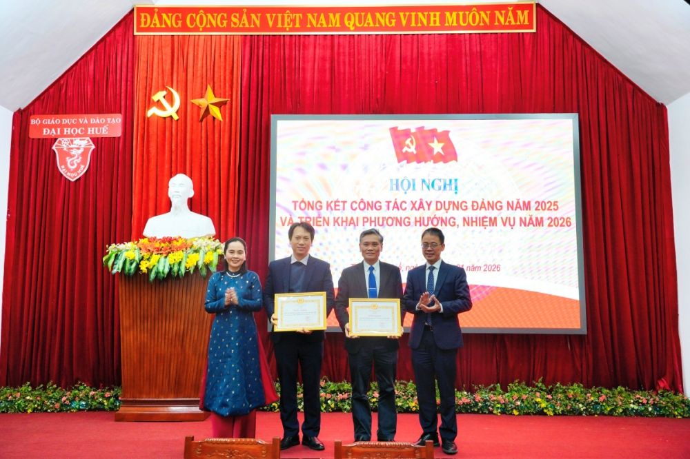 Năm 2025 Đảng bộ Trường Đại học Y - Dược là 01 trong 02 đảng bộ cơ sở được Ban Chấp hành Đảng bộ Đại học Huế khen tặng là tổ chức cơ sở đảng đạt tiêu chuẩn “Hoàn thành xuất sắc nhiệm vụ năm 2025”, đây là sự ghi nhận những nỗ lực nổi bật trong công tác lãnh đạo, chỉ đạo và tổ chức thực hiện nhiệm vụ chính trị, xây dựng Đảng và công tác chuyên môn trong năm qua.
