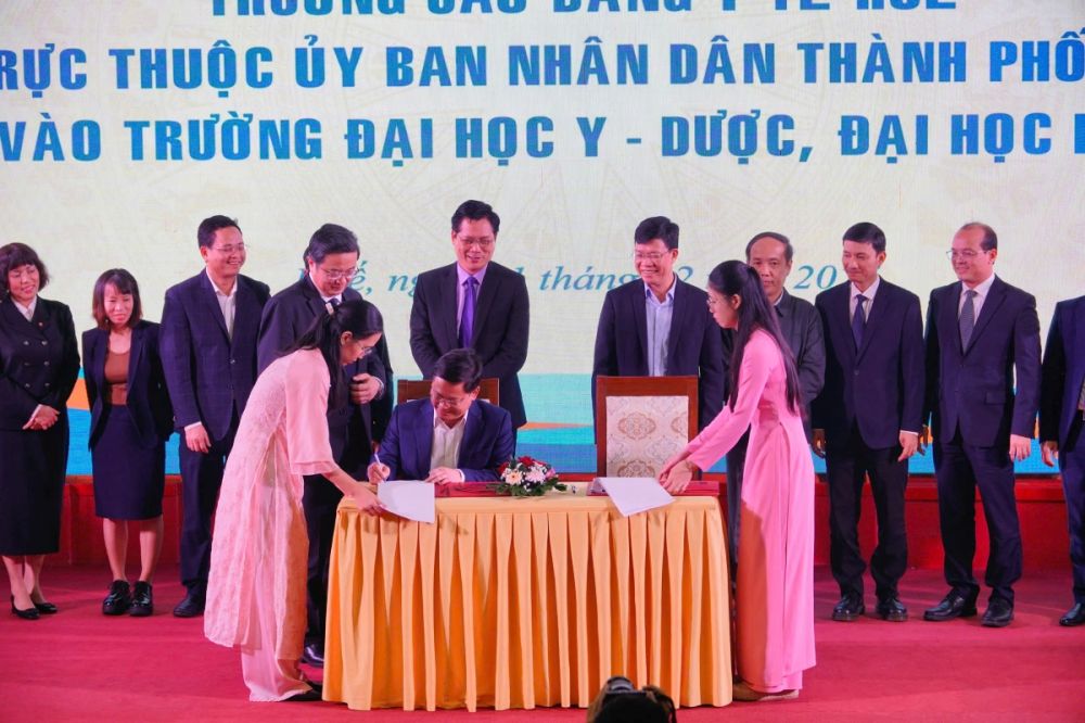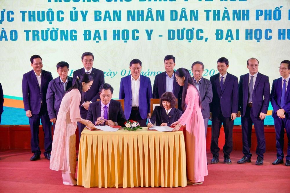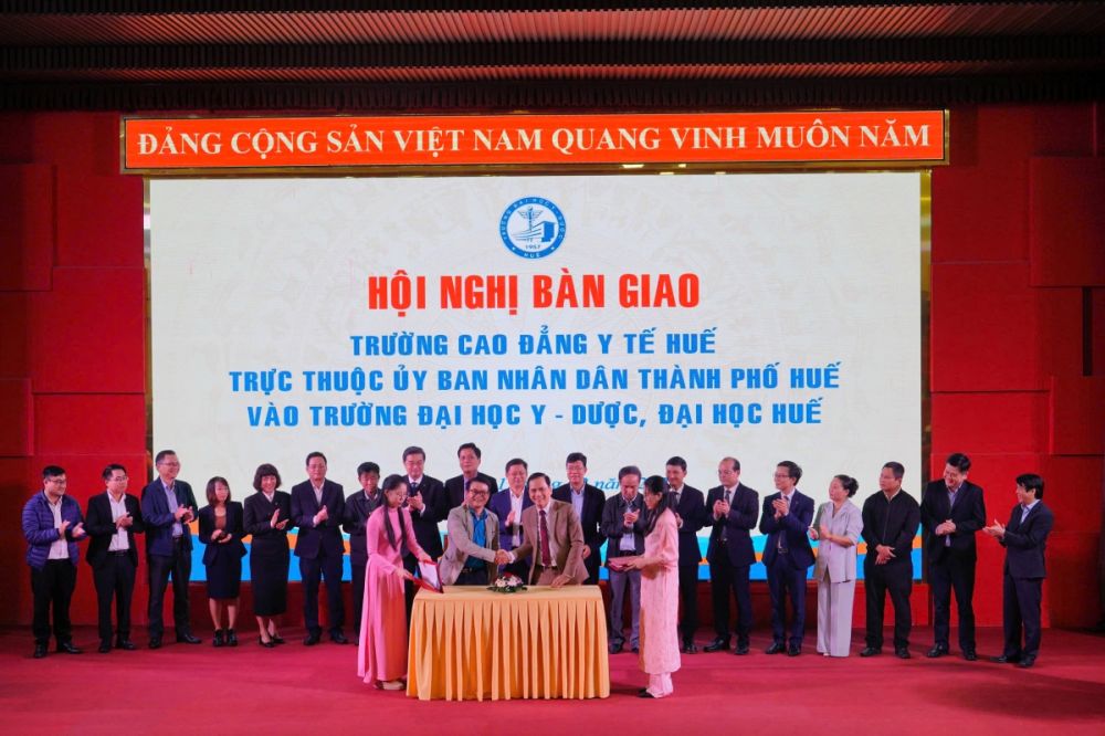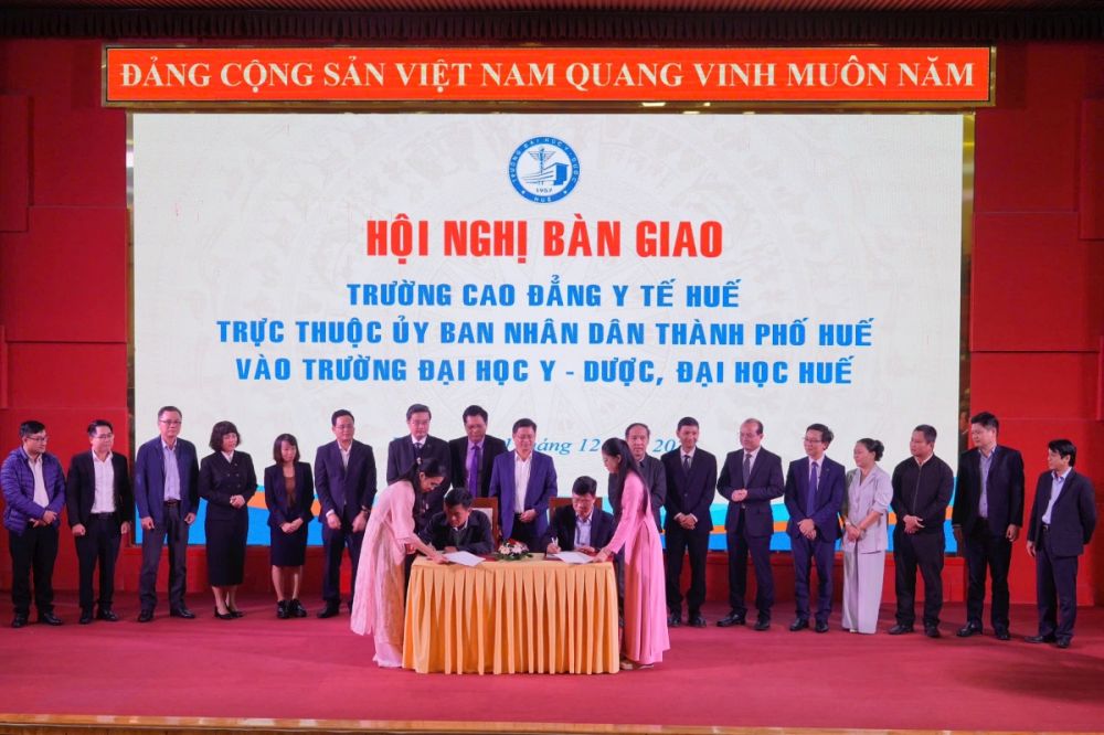 Các bên ký kết biên bản bàn giao, chính thức hoàn tất quá trình tiếp nhận Trường Cao đẳng Y tế Huế vào Trường Đại học Y - Dược, Đại học Huế