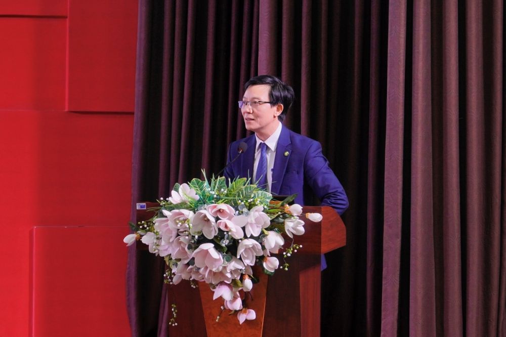 TS. Nguyễn Văn Hùng - Thư ký Hội đồng Trường trình bày báo cáo tóm tắt tại Hội nghị