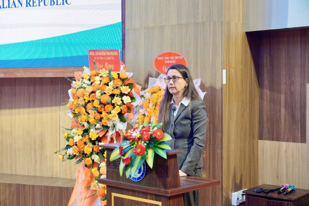 Bà Margherita Lulli - Giám đốc Văn phòng Hợp tác phát triển Ý tại Hà Nội gửi chúc mừng đến Trường Đại học Y - Dược, Đại học Huế và Bệnh viện Trường cùng tất cả những người đã đóng góp cho dự án. Bà Margherita Lulli tin rằng Tòa nhà ODA Ý sẽ trở thành biểu tượng bền vững của mối quan hệ hợp tác giữa hai quốc gia, mang lại lợi ích lớn lao cho người dân.