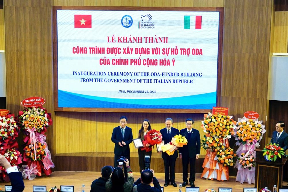 Tại buổi Lễ, Trường Đại học Y - Dược, Đại học Huế đã trao giấy chứng nhận ghi nhận đóng góp cho Đại sứ quán Ý tại Việt Nam và Cơ quan hợp tác phát triển Ý đẻ tỏ lòng biết ơn tấm lòng quý báu và ghi nhận sự đóng góp quan trọng trong quá trình triển khai xây dựng công trình. Trong khuôn khổ buổi lễ, các đại biểu đã thực hiện nghi thức cắt băng khánh thành Tòa nhà ODA Ý và tham quan toà nhà.